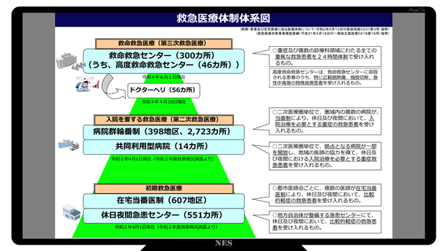 二次救急医療機関は、都道府県が作成する医療計画に基づいて整備される、入院を要する救急医療を担う医療機関(第三次救急医療機関以外)。