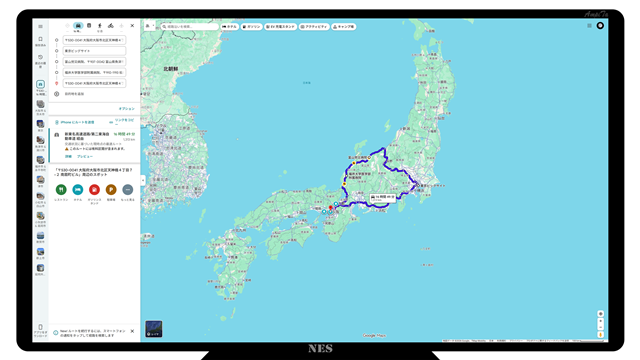 地図で見るとグルリと1周、通った順では大阪府、京都府、滋賀県、岐阜県、愛知県、静岡県、神奈川県、東京都、埼玉県、群馬県、長野県、新潟県、富山県、石川県、福井県、滋賀県、京都府、大阪府でした。