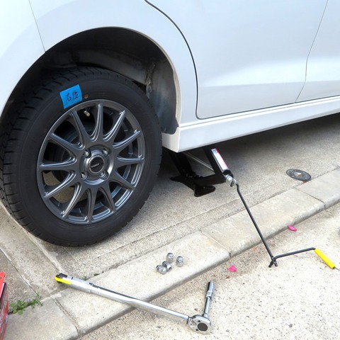 スタッドレスタイヤを備えています。12月頃に装着、3月頃にノーマルタイヤに履き替えています。